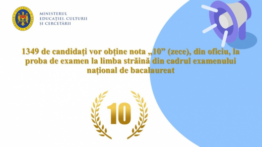Menționăm că în acest an, 1349 de elevi vor obține nota „10” (zece) din oficiu la proba de examen la limba străină din cadrul examenului național de bacalaureat, în comparație cu 1008 în 2019, 785 în 2018, 637 în 2017, 460 în 2016 și 229 în 2015. Precizăm că numărul crescând al elevilor cu performanțe deosebite la nivel internațional denotă atât interesul sporit față de cunoașterea limbilor străine, cât și aprecierea înaltă a evaluatorilor străini.