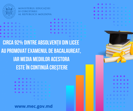 Urmare a desfășurării sesiunii de bază și a celei suplimentare din cadrul examenului național de bacalaureat, rata de promovare a absolvenților din licee este de 91,87%. Astfel, din cei 11070 de liceeni, 10170 au promovat examenul național de bacalaureat.